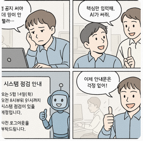 🎨 오늘의 네컷만화: 공지문은 이제 AI 담당
