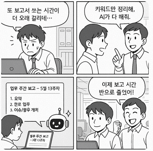 오늘은 실무자라면 누구나 매주 겪는 ‘업무 보고서 작성’의 번거로움을