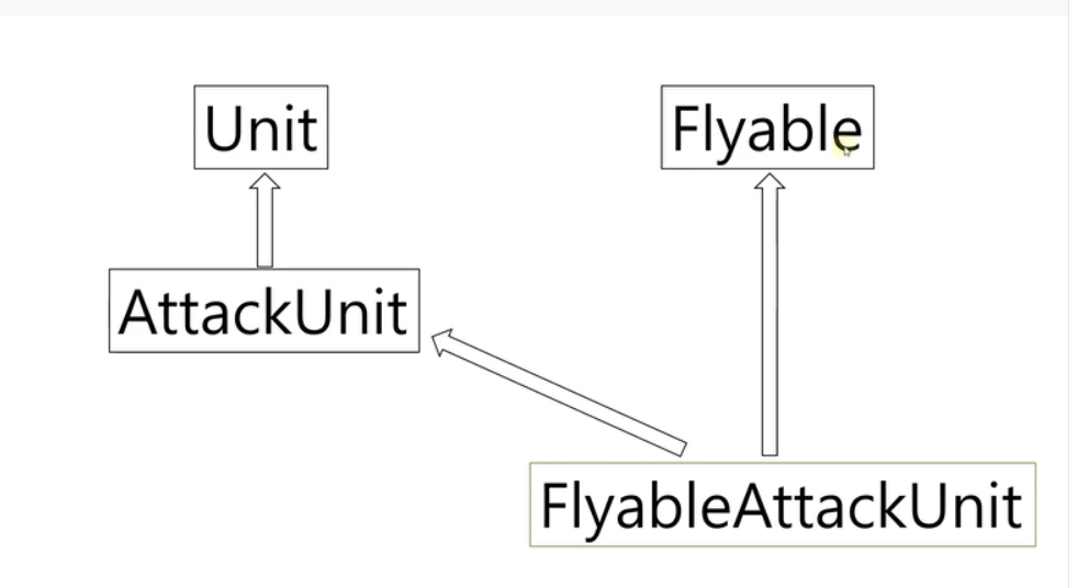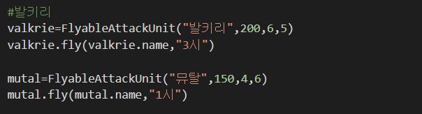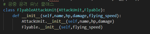 이경우 Flyable이라는 클래스와 AttackUnit이라는 클래스 2가지를 상속받아 클래스를 생성할 수 있습니다.