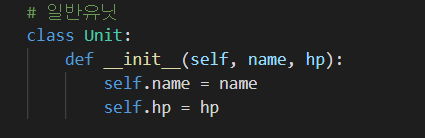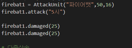 그 이후 damage는 Unit에 없는 내용이기 때문에 따로 self.damage=damage를 입력해 주는 것입니다.