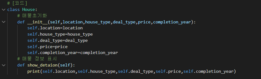먼저 제시되어있는 House클래스에서 함수들을 설정해 보겠습니다.