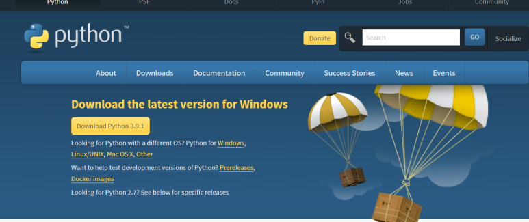 위 화면에서 보이는데 Download Python얼 누르면 된다.(글 작성 시점의 최신 버전은 3.9.1이며 접속당시 가장 최신버전을 다운받으며 된다)