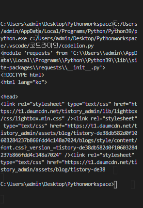 그리고 requests라는 모듈 함수중에 text함수를 사용하여 출력해보면 아래와 같습니다.