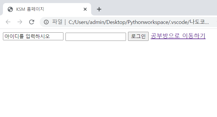 그리고 이 코드는, 공부방으로 이동하기 라는 링크가 있고 위의 링크 즉 제 홈페이지 링크로 이동하는 내용의 코드를 작성해 보겠습니다.