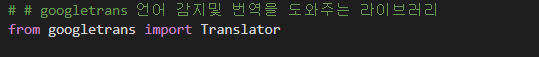 googletrans는 언어 감지및 번역을 도와주는 라이브러리 입니다.
