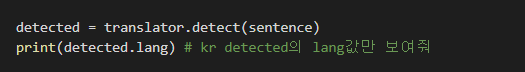 이를 detected.lang을 사용하여 detected의 lang값만 보여주도록 출력해 보았습니다.
