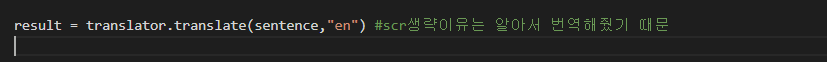그리고 src는 앞선 text 재료의 언어를 작성해 줍니다. 이는 생략이 가능합니다. 이미 translator함수에서 인지를 해주었기 때문입니다.