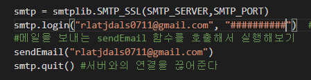 smtp.quit()로 서버와의 연결을 끊어주며 코드를 종료합니다.