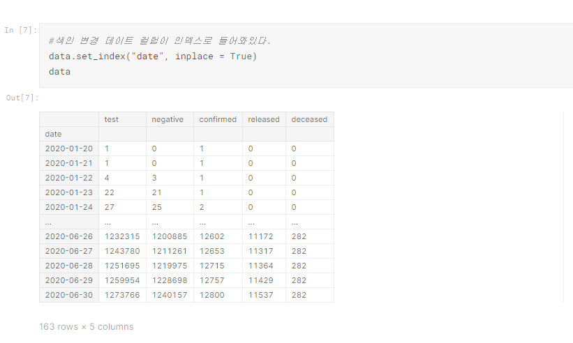 위와 같이 날짜가 지남에 따라 코로나바이러스의 상황을 확인할 수 있습니다.