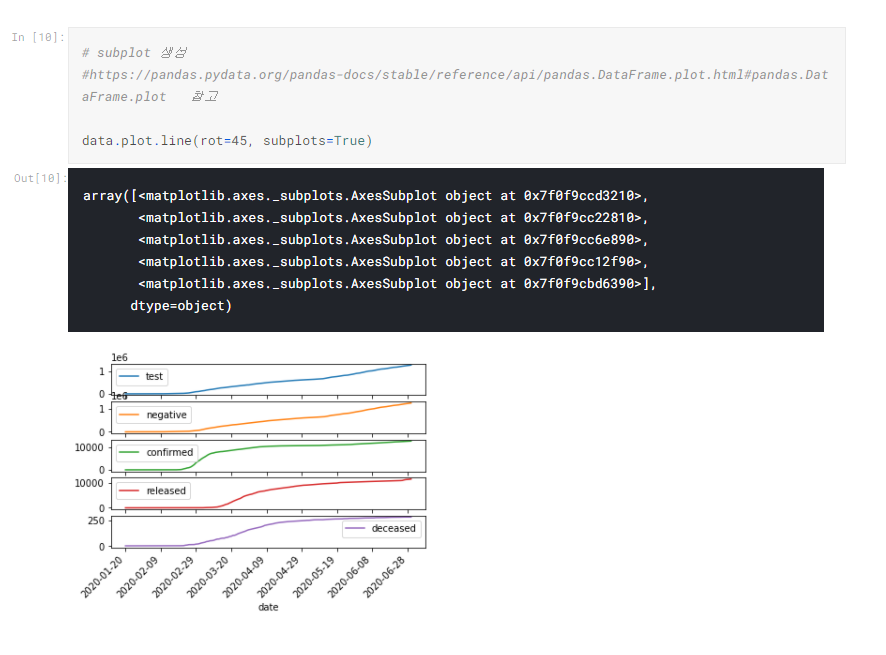 subplots을 생성하여 개별의 그래프를 위와 같이 만드는 작업을 시행한것을 확인할 수 있습니다.