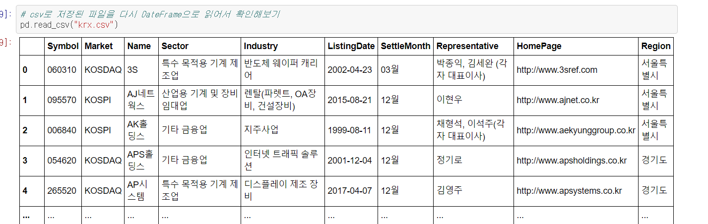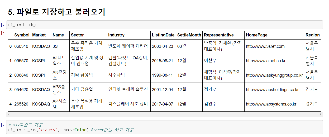 그리고 이번에는 한국거래소 상장족목을 가져와 보려 합니다.