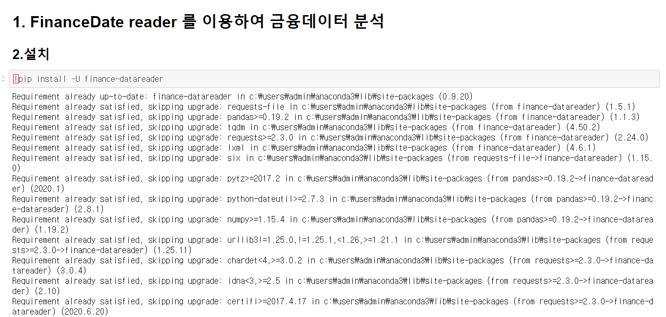 먼저 위와 같이 Finance-datareader를 설치해 주어야 합니다.