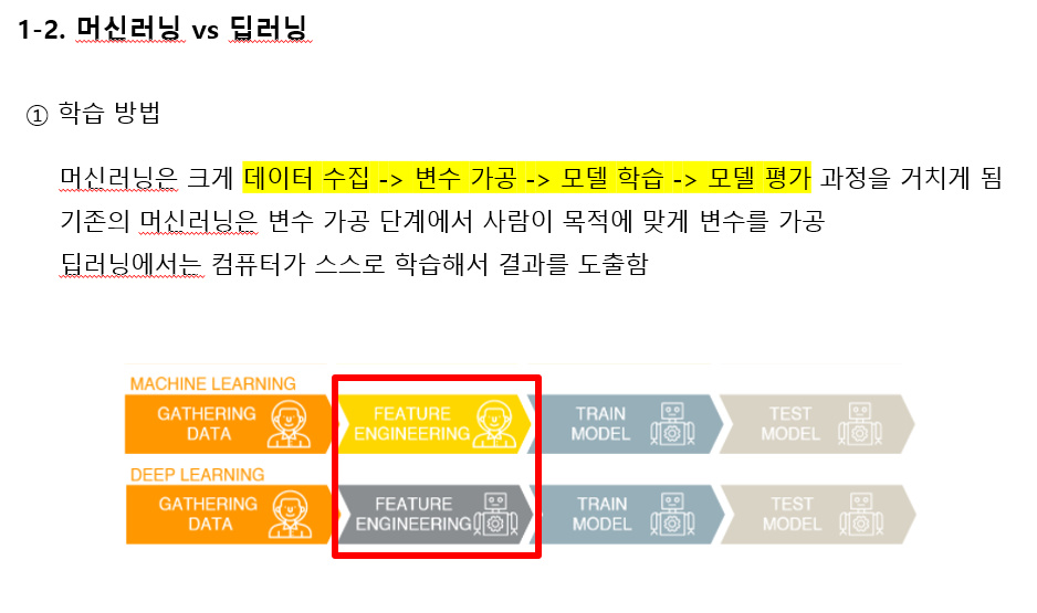 그리고, 머신러닝와 딥러닝을 학습 방법의 관점에서 차이를 살펴보자면,