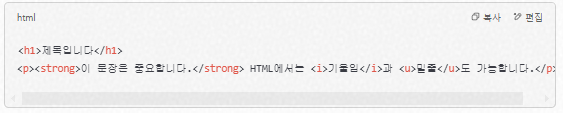 💡 제목은 <h1>이 가장 크고, <h6>이 가장 작습니다.