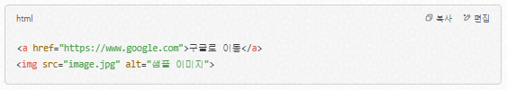 💡 링크는 반드시 href 속성이 필요하며, 이미지는 src 속성으로 파일 경로를 지정해야 합니다.