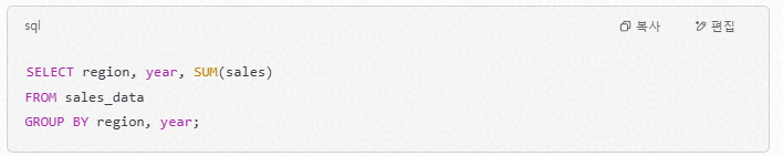 - 매출 분석 → ‘연도별/월별/지역별’ 매출 데이터를 빠르게 집계