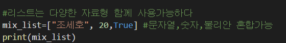 그리고, 리스트의 가장 큰 특징 중 하나인 , 리스트는 다양한 자료와 함께 사용이 가능합니다.