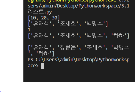 결과값을 바로 아래에 표시해 보자면, 리스트와 같이 나올수 있음을 확인할수 있습니다.
