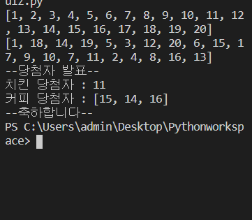 print("커피 당첨자 : {0}".format(winners[1:]))