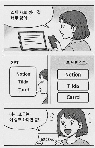 - 컷2 – (GPT에게 질문) “링크 하나로 내 포트폴리오를 정리할 수 없을까?”